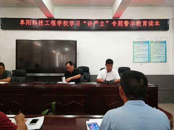 7月26日上午,阜阳科技工程学校召开了有全体党员参加的“讲严立”专题警示教育活动推进会。会议由党总支书记穆达主持。