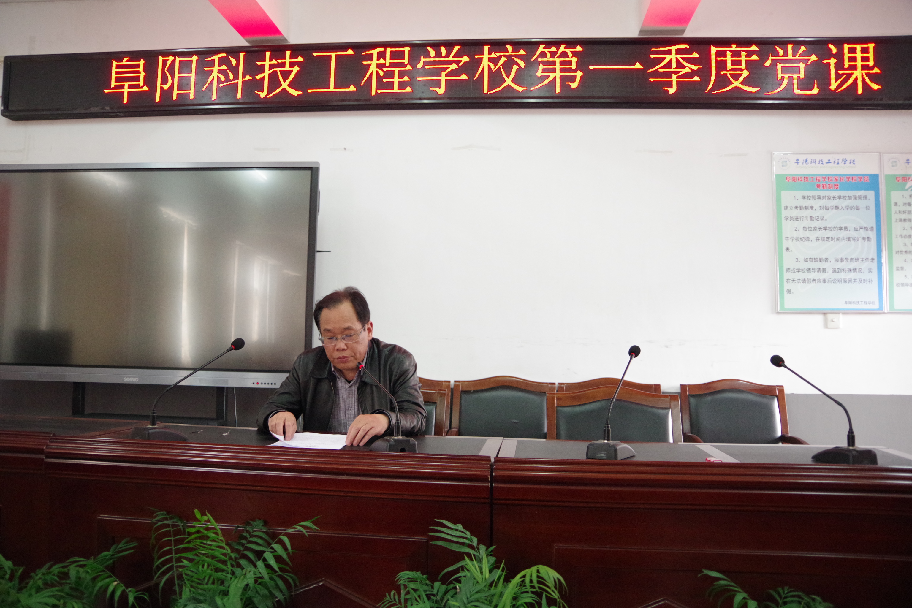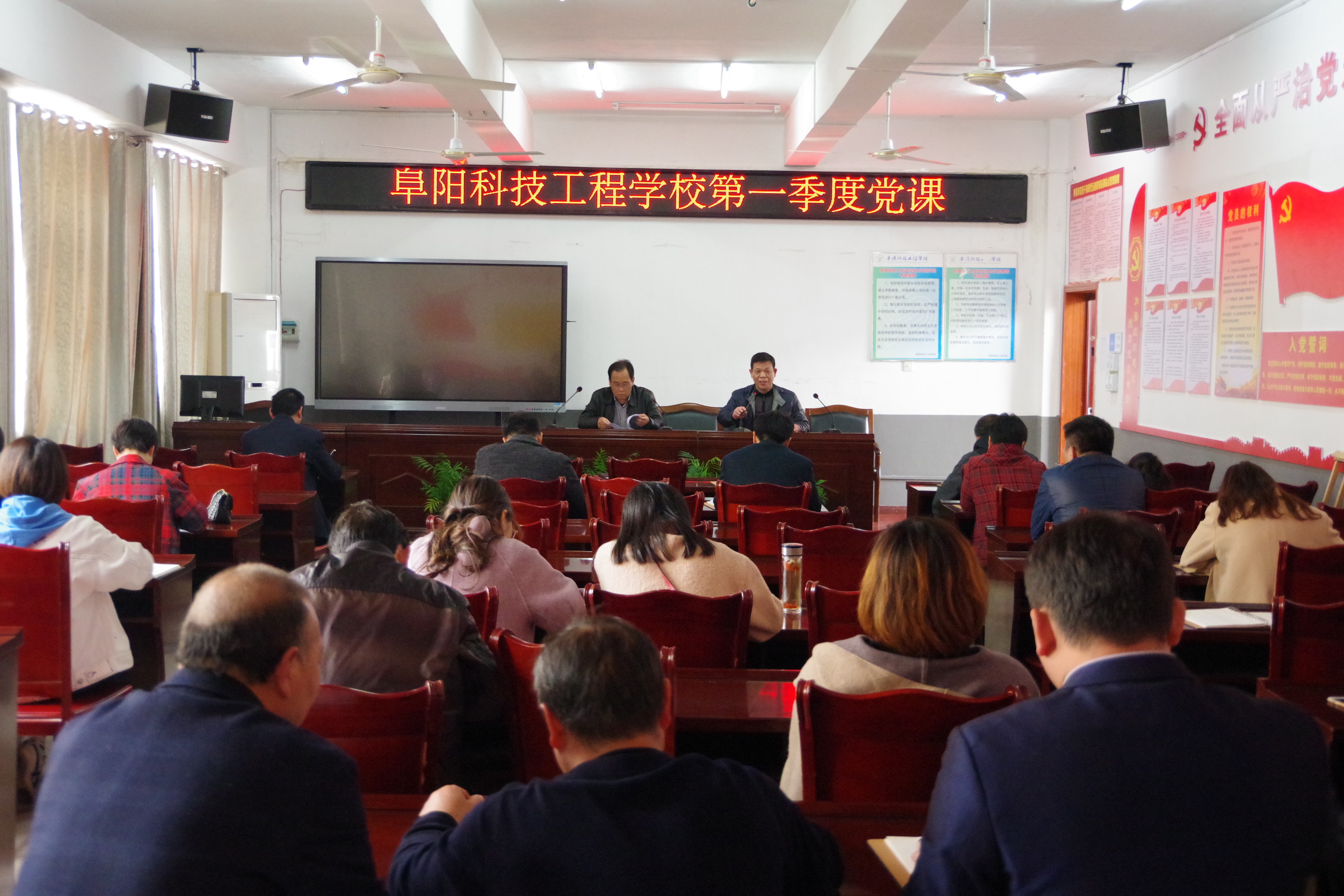 3月29日下午,阜阳科技工程学校在笃行楼四楼东会议室上了第一季度党课。
