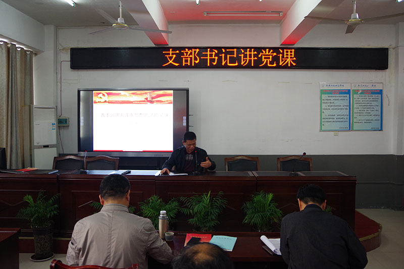 10月14日,阜阳科技工程学校党总支在笃行楼四楼东会议室开展“支部书记讲党课”活动。学校第二党支部书记关鹏为全体党员上了一堂题为“学会运用毛泽东思想的活的灵魂”的主题党课。